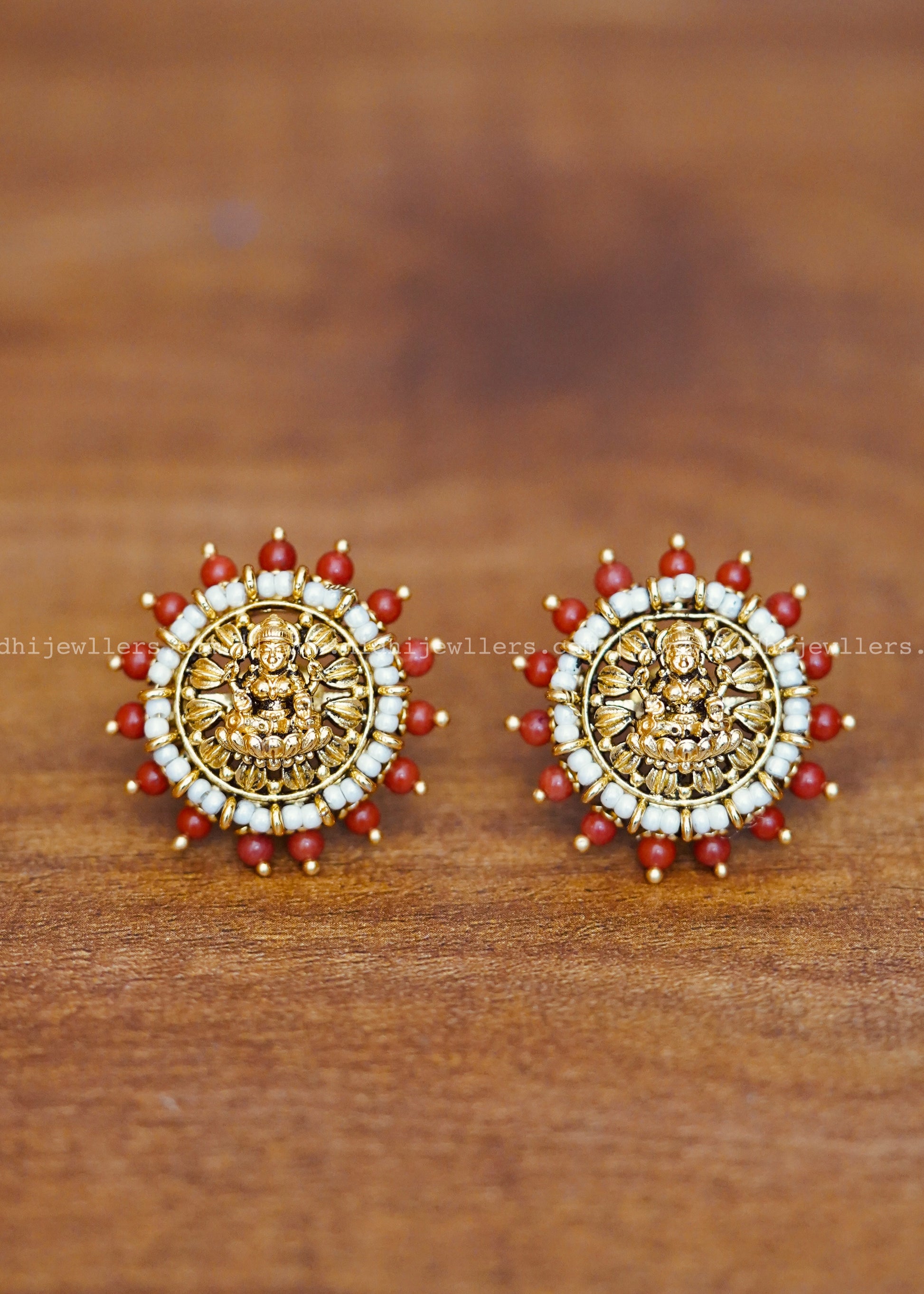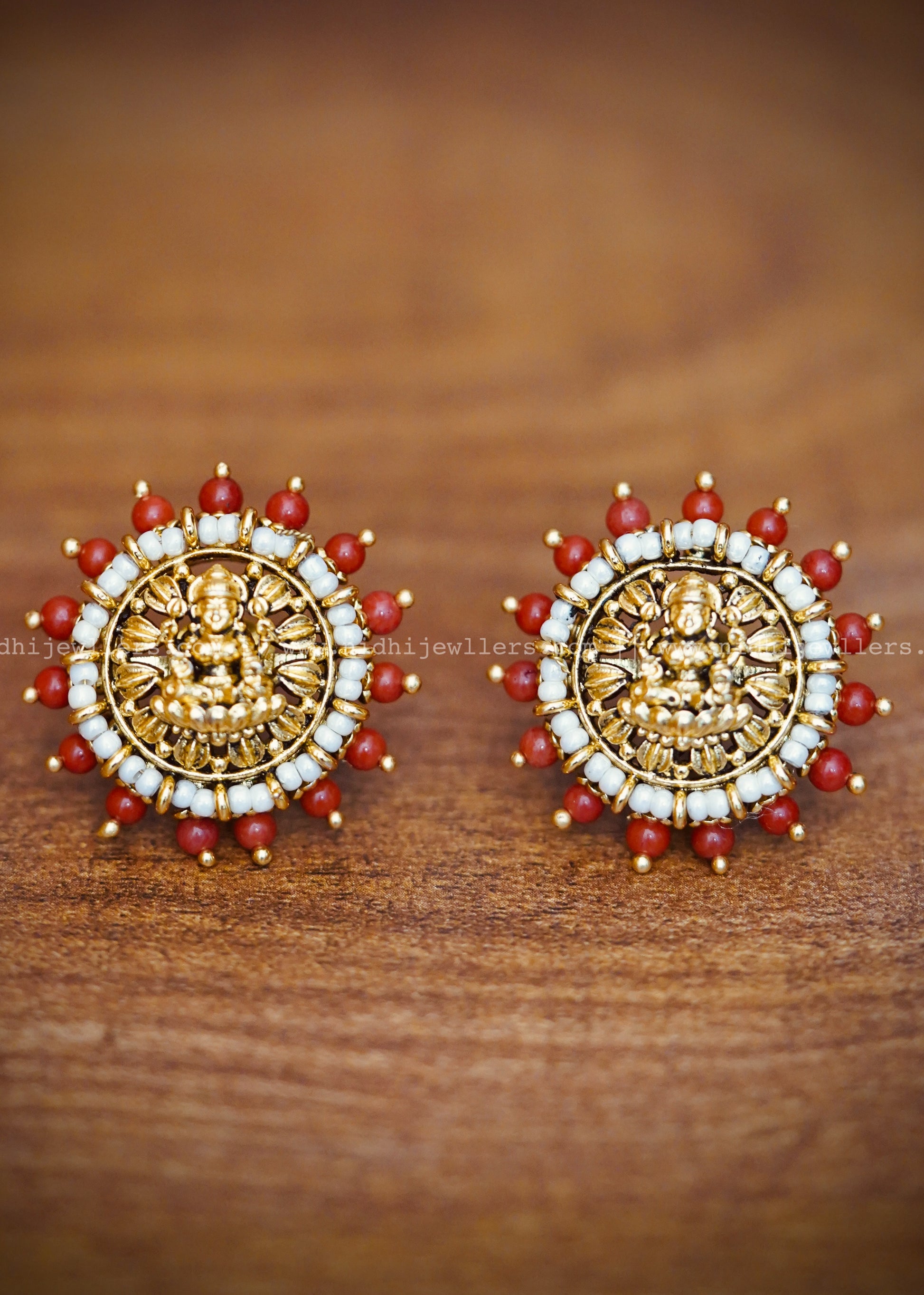 Premium Lakshmi white and red beads earring